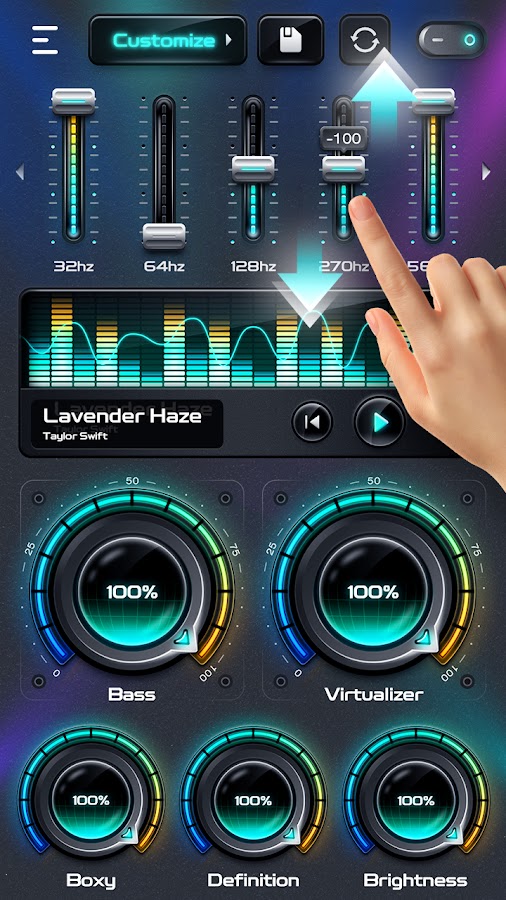Улучшите качество звука вашего устройства Android с помощью бесплатного музыкального усилителя басов. Самый профессиональный звуковой эквалайзер и виртуализатор помогут вам погрузиться в эффекты объемного 3D-звука.