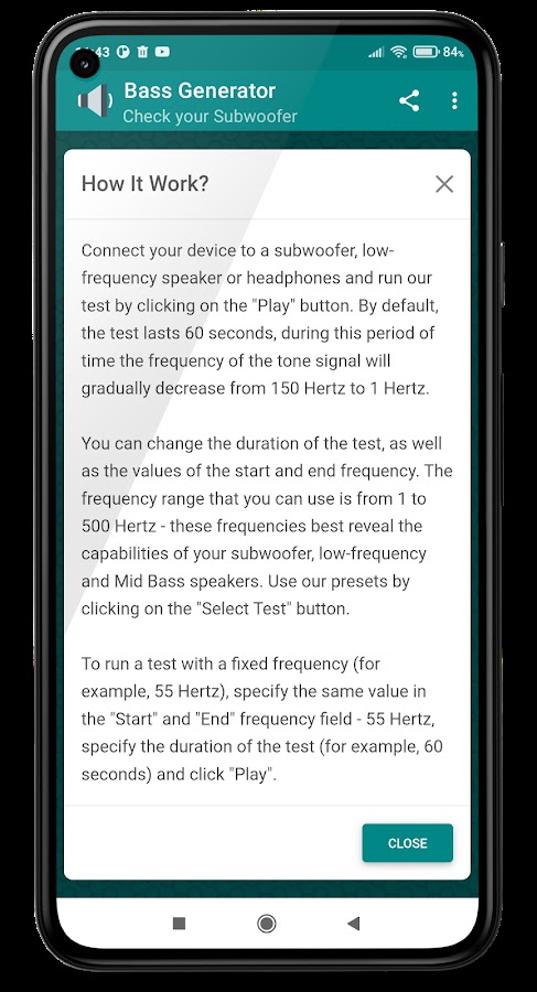 «Генератор басов» — простое мобильное приложение для тестирования сабвуфера. Генератор басов позволит вам проверить и настроить сабвуфер или низкочастотный динамик. Приложение может работать в автономном режиме без подключения к интернету.