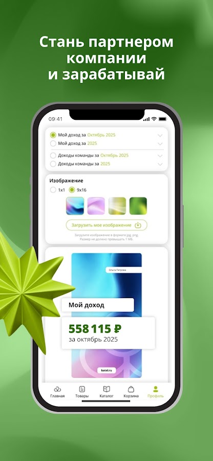 — Раздел «БИЗНЕС» с актуальными промоушнами и акциями, вдохновляющими историями успеха, обучением, информацией о событиях, возможностях реферальной программы и профессионального роста.