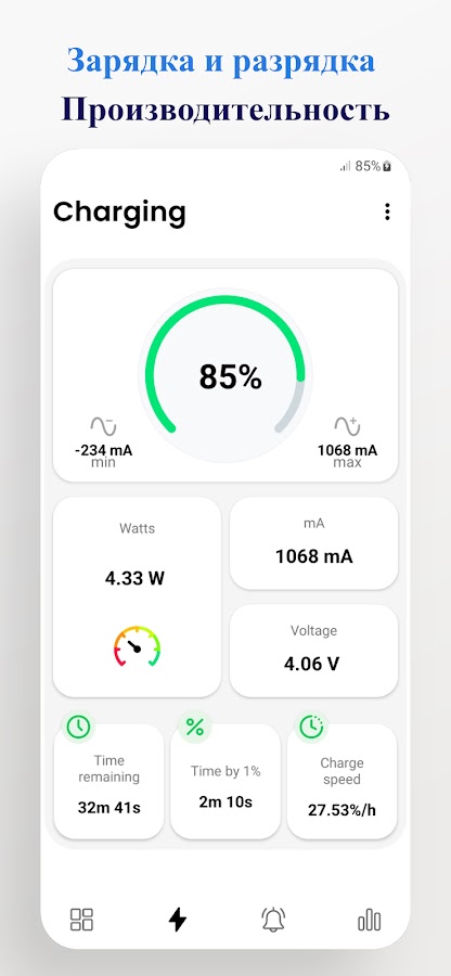 С помощью BatteryCare вы можете отслеживать процесс зарядки: проверять, работает ли ваш зарядный блок должным образом, сколько ватт подается и является ли зарядка медленной, быстрой или супербыстрой.