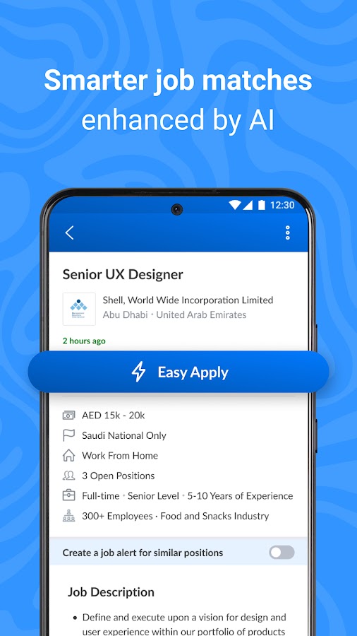 — Никогда не пропускайте важные вакансии. Приложение отправляет уведомления в режиме реального времени, когда работодатели публикуют вакансии, соответствующие вашим навыкам. – Получайте уведомления о вакансиях в Дубае, ОАЭ, Саудовской Аравии и других городах.