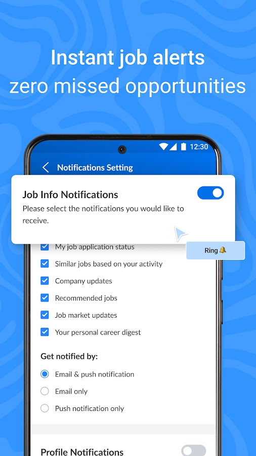 — Будьте в курсе с помощью персонализированных уведомлений о вакансиях