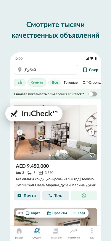 Полезный совет: Ищите объявления, отмеченные TruCheck™, для выбора из настоящих и доступных объектов!