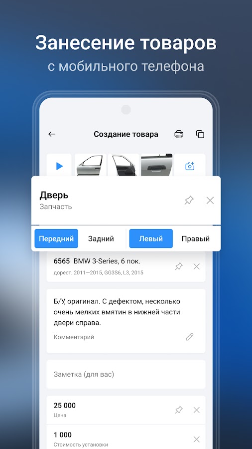 Приложение позволяет фотографировать товары, приходовать, редактировать и просматривать товары в системе Bazon