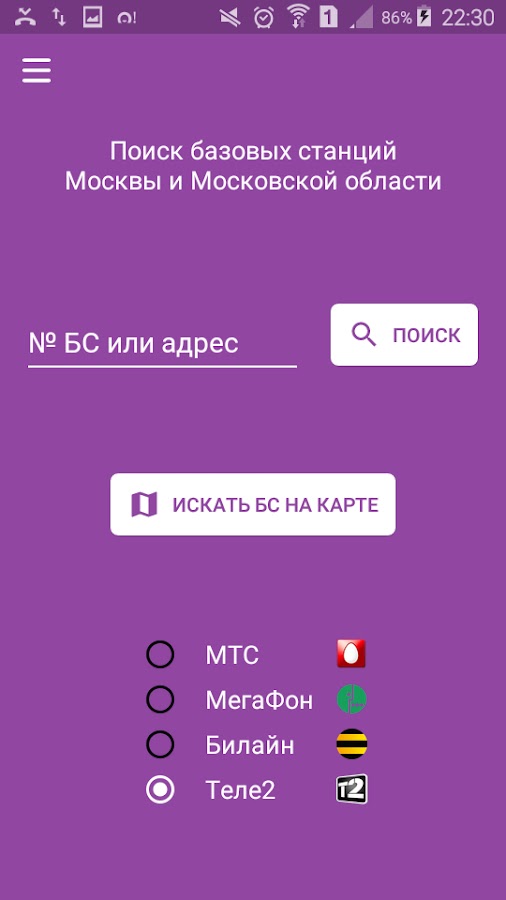 Поиск вышек: ищите по номеру базовой станции, адресу или через голосовой ввод.