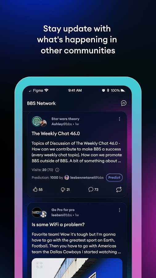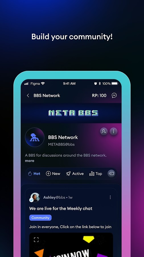 Сеть BBS — это общедоступная сеть взаимосвязанных досок объявлений (ностальгически названная BBS в честь систем досок объявлений раннего Интернета). Каждая доска в сети предлагает функции, аналогичные устаревшим приложениям для социальных сетей: создавайте сообщения, комментируйте и присоединяйтесь к обсуждениям, загружайте видео, общайтесь в чате и т. д. — при этом используется общедоступная база данных, которая дает каждой доске полную автономию, а также возможность подключения к другим сообщества в сети.