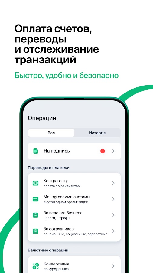 Быстрые платежи и переводы можно отправлять в другие банки за 30 минут. Легко оплачивайте за свой бизнес налоги и другие бюджетные платежи (пенсионные, социальные, страховые). А для международных переводов вам доступна система SWIFT