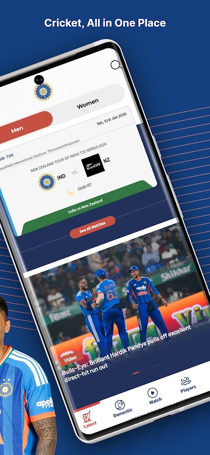 Официальное приложение BCCI и дом индийской команды по крикету!