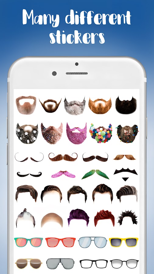 ✔ Попробуйте более 180+ наклеек для бороды, наклеек для причесок, наклеек для усов, наклеек для очков для создания идеального мужского фото!