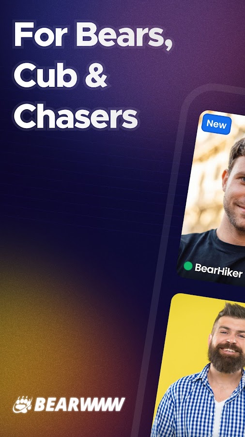 BEARWWW — бесплатное приложение для знакомств для геев и бисексуалов, где приветствуются все идентичности и стили (скраф-парни, «медведи», «охотники», «сниффи», «охотники за папочками», «выдры», «крепкие», «волосатые», «детеныши», «голавы», «воздушные», «серебряные папочки» и другие).