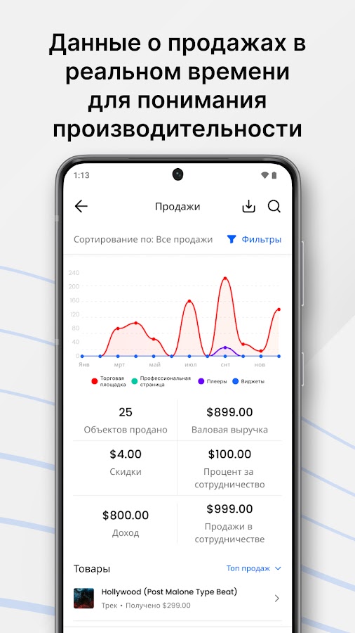 Подробная статистика и данные о продажах: отслеживайте в реальном времени исполнение своих треков или пользуйтесь сохраненными данными. выявляйте ведущие источники, определяйте самые исполняемые треки, новых поклонников и получайте важные сведения из топовых стран.
