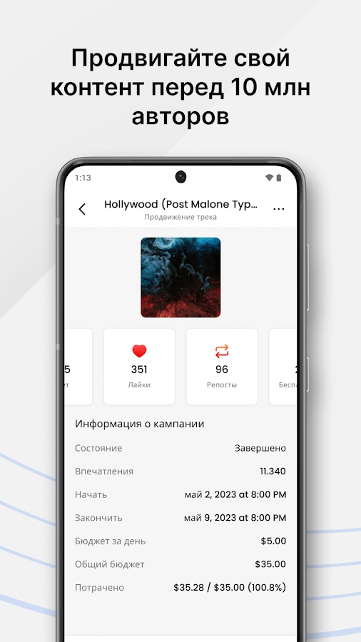 Продвигайте треки: с легкость создавайте и проводите собственные кампании для продвижения треков для миллионов новых потенциальных заказчиков.