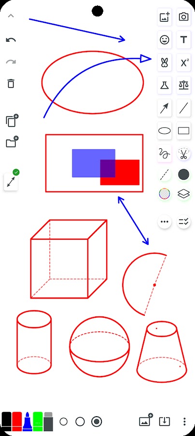 Подходит для обучения, творчества, презентаций и учебных черновиков. Поддерживает международные форматы бумаги и различные объекты, а также множество геометрических фигур для мгновенного рисования. Удобна для преподавания, творчества и живого общения. Также подходит для черновиков домашних заданий, заметок, набросков, временных напоминаний, диктантов и математических упражнений.
