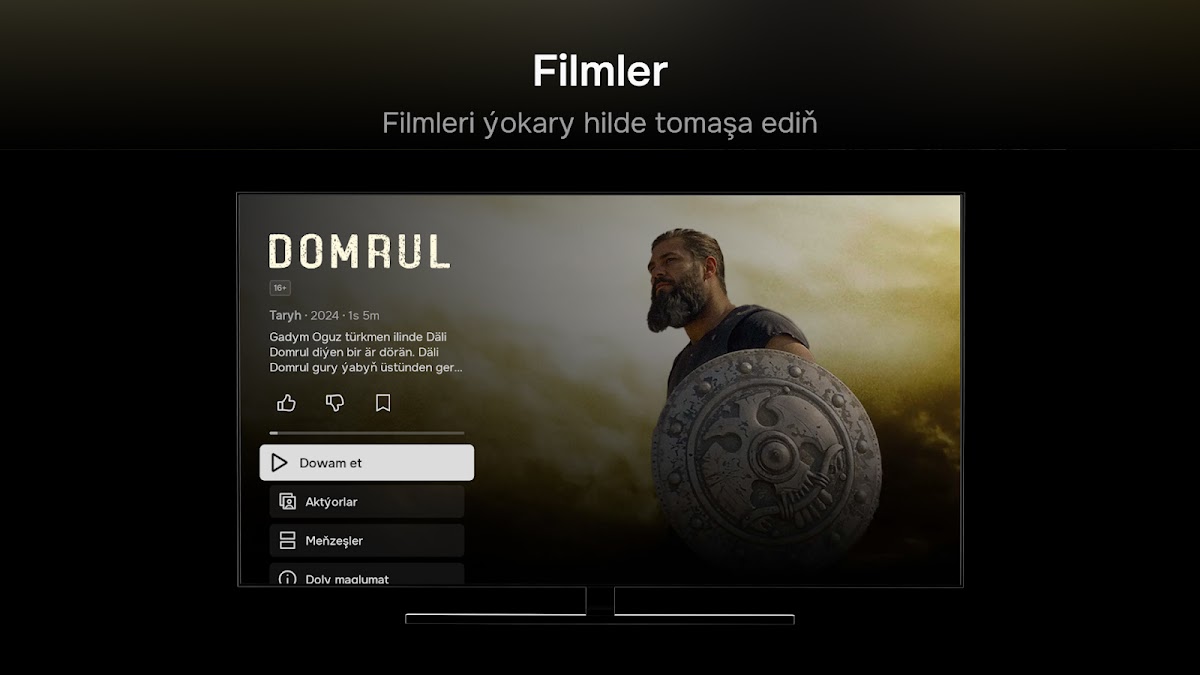 • Täze filmleri we seriallary yzygiderli goşýarys, şonuň üçin hemişe tomaşa etmäge gyzykly filmleri taparsyňyz. Katalogymyza göz aýlamak ýa-da gözlegden peýdalanmak ýeterli.