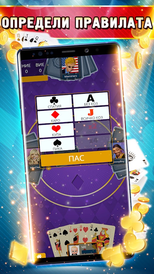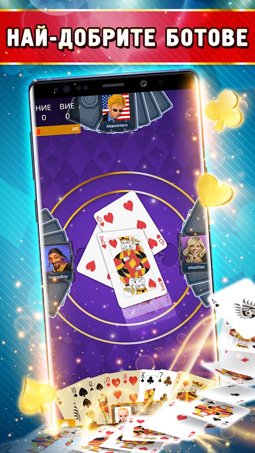 Начни играть по-настоящему белыми по-болгарски прямо сейчас! Наслаждайтесь быстрой анимацией и красивой графикой, пока вы расслабляетесь и совершенствуете свои навыки в самой известной карточной игре в Болгарии — belot!