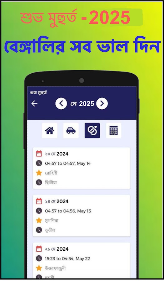 Скачайте последнюю версию бенгальского календаря: это лучшее приложение-календарь на бенгальском языке, которое включает в себя все месяцы календаря: фестивали, праздники, Шуб Мухурт (даты бракосочетания), даты покупки автомобиля, новоселья / гриха правеша. Также содержит информацию о бенгальском Рашифале, бенгальском Рашифале (बंगाली राशिफल), бангальском гороскопе и бенгальской астрологии.