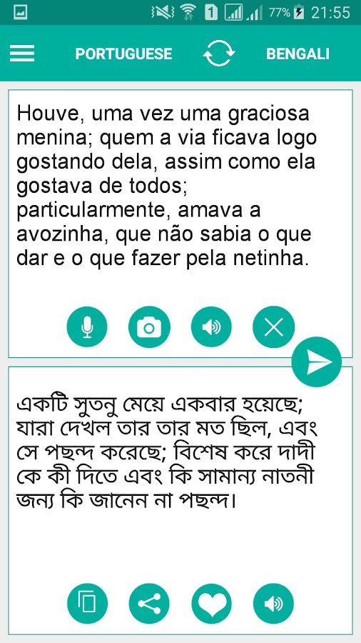 Бонусная функция — выучите и освоите произношение, поскольку бенгальский португальский переводчик имеет встроенную звуковую функцию. Слушайте переведенный текст и общайтесь с друзьями, подругами, парнями, членами семьи или туристами.