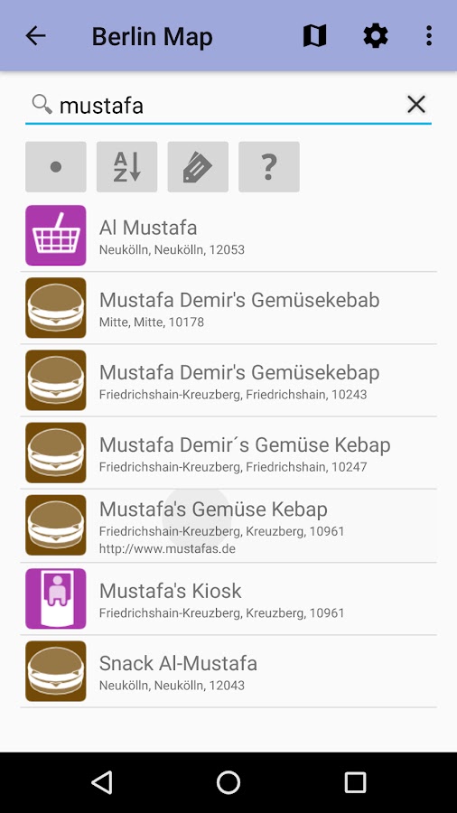 * Расширенная версия позволяет поиск по категориям: например, можно получить список всех музеев в районе поиска, и затем сортировать результаты по расстоянию.