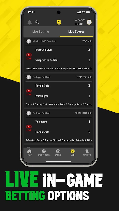 Получайте текущие спортивные коэффициенты и делайте ставки в реальном времени по ходу игры. Социальное приложение для ставок на спорт Bet On Sports™ предлагает встроенное полнофункциональное программное обеспечение для ставок в режиме LIVE, позволяющее делать ставки на любимые команды и события на протяжении всего матча. Правильно, вы можете получать спортивную статистику и коэффициенты ставок в режиме реального времени и делать ставки каждую минуту на события, происходящие прямо по мере их развития.