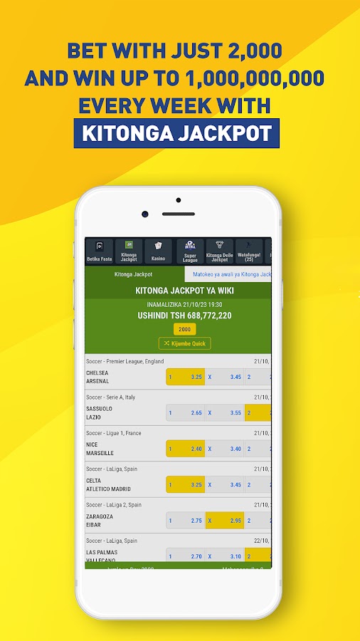 Приложение Betika позволяет вам делать ставки лучше и быстрее, обеспечивая постоянную безопасность и простоту использования. Зарегистрируйтесь сегодня и выигрывайте в различных видах спорта, таких как футбол, лучшие игры казино, виртуальные виды спорта, такие как «Авиатор», джекпоты и многое другое.