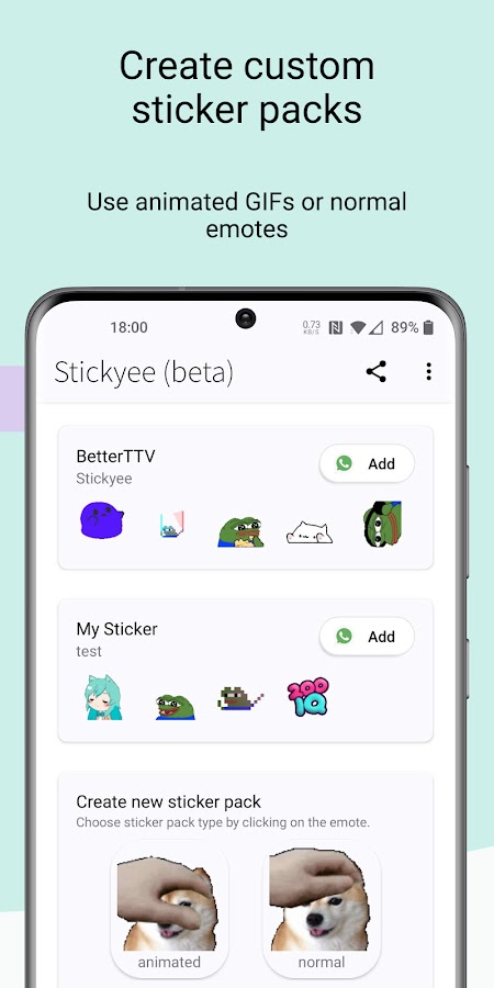 Используйте свои любимые эмоции из Better Twitch TV прямо сейчас с WhatsApp. Создавайте анимированные и обычные наборы стикеров.