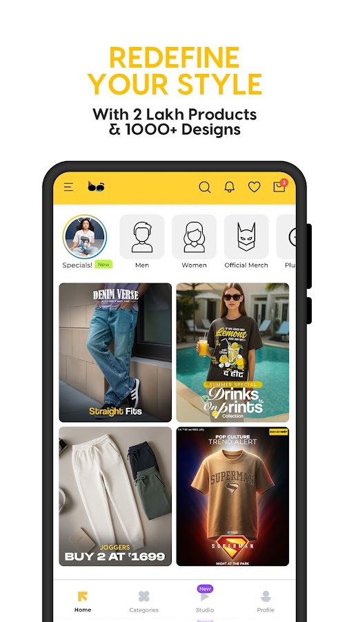 Самый быстрорастущий молодежный модный бренд Индии. С 2012 года продано более 20 миллионов товаров, более 10 миллионов загрузок. ★★★★★ Приложение для онлайн-шопинга с самым высоким рейтингом в Playstore.