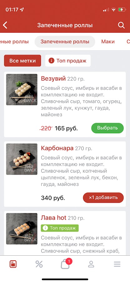 — Разнообразное меню роллов, комбо-наборов, лапши WOK, супов, десертов и напитков