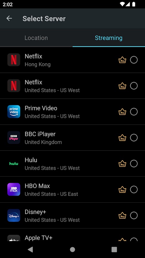 3) Выберите самый быстрый и стабильный сервер для повторного подключения