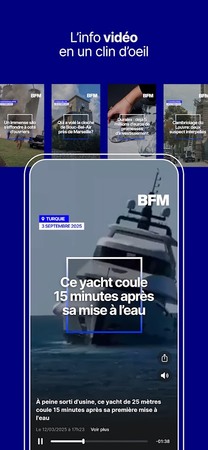 Смотрите BFM TV в прямом эфире в любое время с функцией «Vertical Live», разработанной для удобного просмотра и оптимизированной для мобильных устройств.