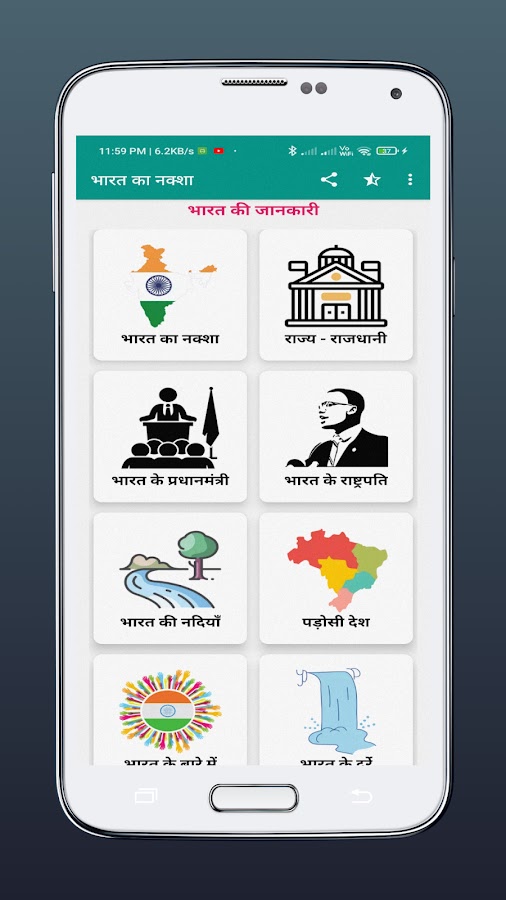 Es App меня Бхарат Ка Накша HD мне дия гая хай, иске сат привет бхарат ка саманья гьян бхи дия гая хай джо apke liye bahut привет важно хо шакта хай.