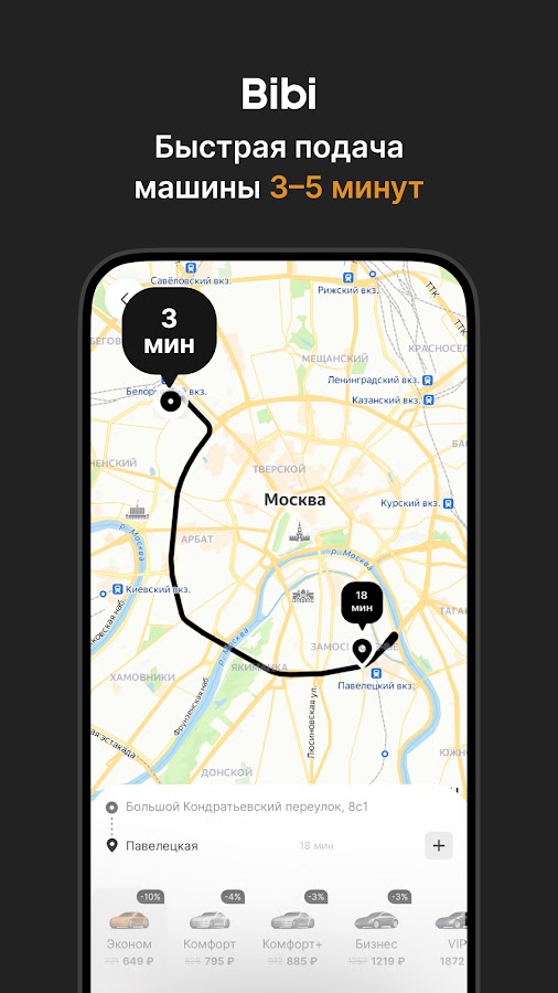 В приложении вы также найдете и сервис “BiBi для бизнеса” — это специальные условия для корпоративных клиентов и предпринимателей. BiBi уделяет особое внимание такси для бизнеса, с нами вы сможете управлять корпоративными поездками по всей России, анализировать данные и сокращать расходы на поездки в личном кабинете или в мобильном приложении.