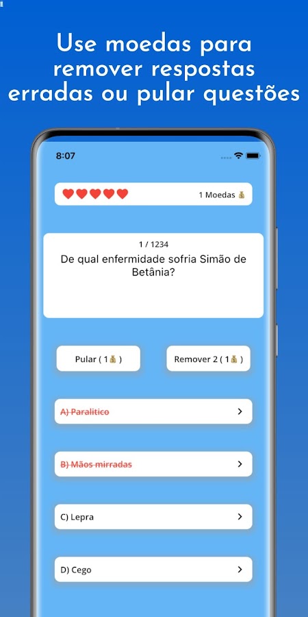 Зарабатывайте монеты, чтобы помочь вам с подсказками в библейской викторине, которые облегчают ее, например: исключайте неправильные ответы и пропускайте более сложные вопросы, чтобы облегчить получение большего количества очков в конце каждой игры.