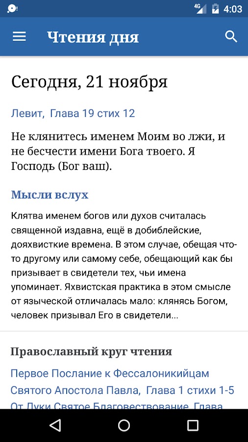 Мобильное приложение сайта Библия-Центр: чтения дня, мысли вслух, поиск, вопросы-ответы, темы.