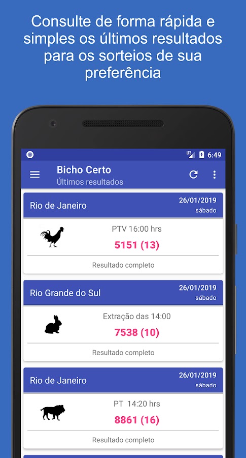 Скачайте приложение Bicho Certo — Resultados для Android бесплатно - последняя версия (3.0.3) уже доступна для установки на ваш телефон или планшет.
