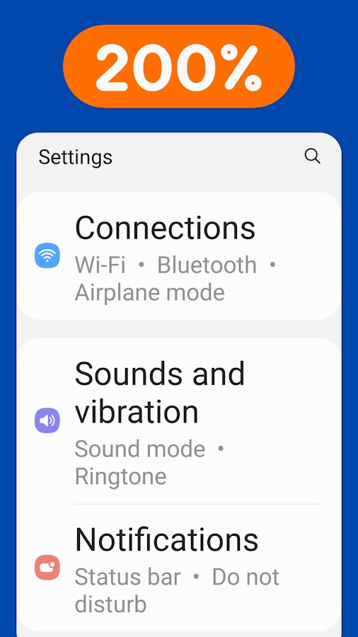 Большой шрифт — это простой инструмент, который поможет вам изменить размер системного шрифта и отобразить точный увеличенный процент шрифта после выбора. А также вы можете сбросить размер шрифта по умолчанию (100%) одним касанием!