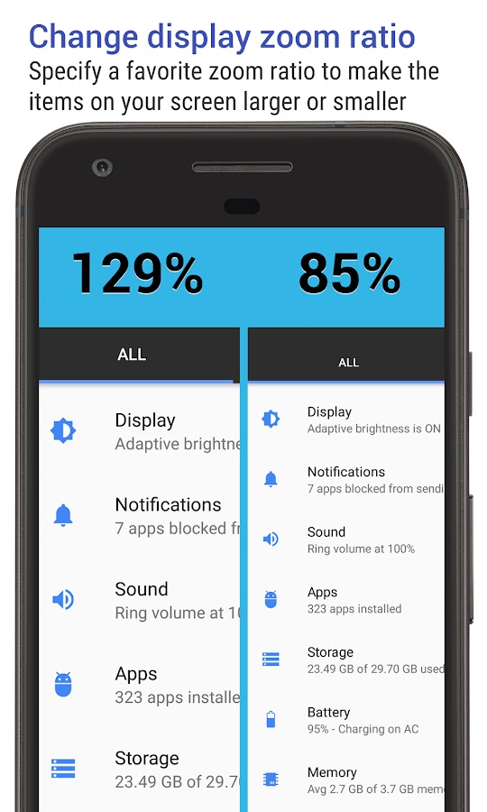 ★ Изменение коэффициента масштабирования дисплея на устройствах Android 7.0 или выше