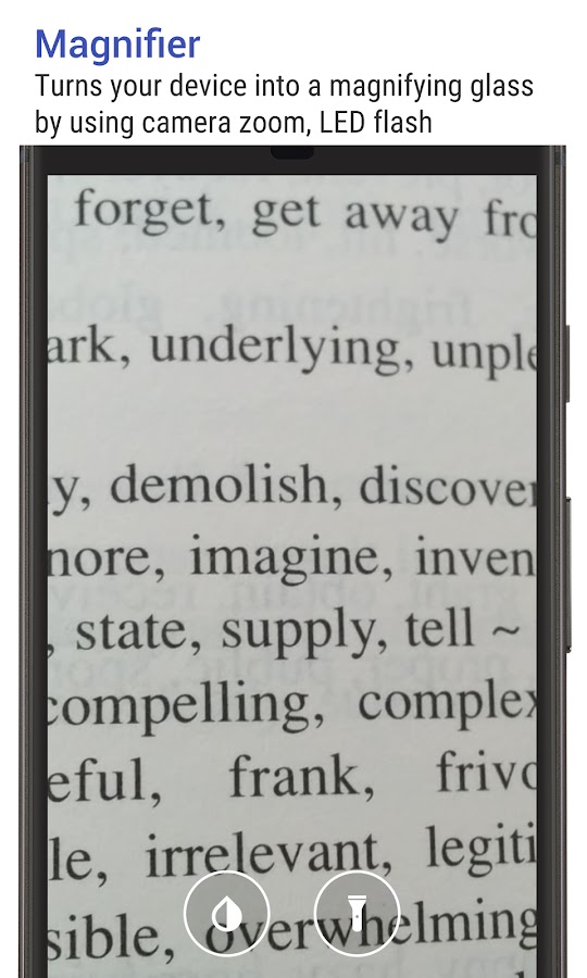 ★ Превращает ваше устройство в увеличительное стекло с помощью масштабирования камеры, автоматической фокусировки и светодиодной вспышки