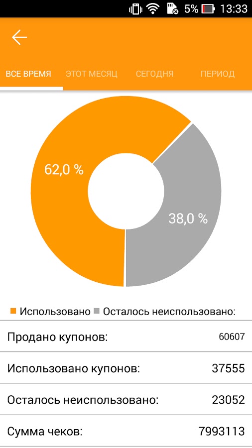 — Просматривать статистику по погашенным купонам.