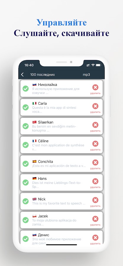 Наше приложение используют видеоблогеры для озвучки своих видео, оно идельно подходит для создания аудио со смешными репликами, которыми можно рассмешить друзей, а если у вас есть статья, которую вам лень читать, вы можете её прослушать, просто скопируйте и вставьте её в приложение, статья станет доступна для прослушивания в считанные секунды.