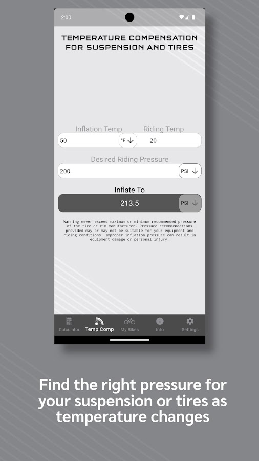 Скачайте приложение Bike Tire Pressure Calculator для Android бесплатно - последняя версия (2.1.0) уже доступна для установки на ваш телефон или планшет.