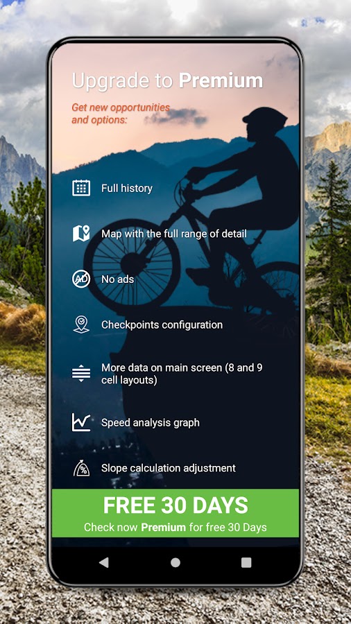 Это приложение для езды на велосипеде также можно использовать для тренировок на беговых лыжах, эндуро-велотренажерах, бега, катания на лыжах, коньках или любых других видов спорта, которые практикуются на открытом воздухе. Это приложение полезно для опытных велосипедистов-профессионалов, а также для начинающих велосипедистов будет очень весело.
