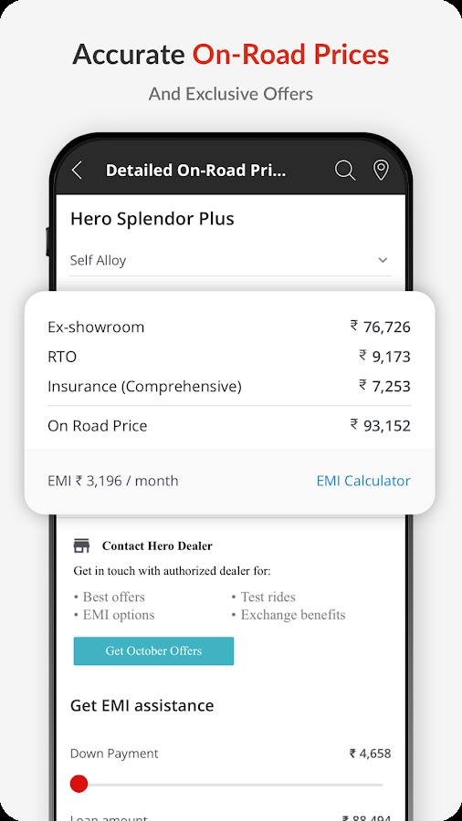 3. Ценовые котировки. Получите ценовые котировки из выставочного зала для всех велосипедов, проданных в Индии. Приложение также поможет вам проверить стоимость проезда во многих городах Индии, таких как Мумбаи, Хайдарабад, Бангалор, Калькутта, Ченнаи и многих других.