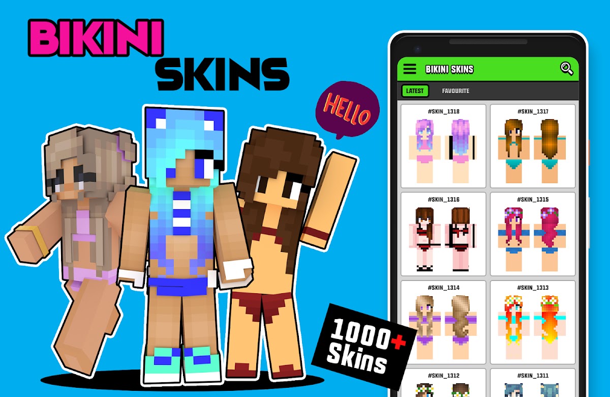 Лучшие скины для бикини NEW для minecraft PE (Pocket Edition), а также более 1000 скинов для девочек и мальчиков с совершенно бесплатно! Найдите и сохраните ваши любимые лучшие скины в бикини , а затем установите наши скины для вашего мира minecraft с помощью мгновенной установки в один клик и играйте с самыми крутыми друзьями!