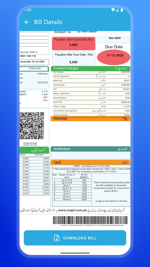 Это приложение служит удобным средством просмотра счетов, позволяющим мгновенно получить доступ к истории дубликатов счетов SNGPL и их текущему статусу. Независимо от того, нужно ли вам проверить сумму счета, узнать срок оплаты или посмотреть историю потребления, это приложение упростит вам задачу.