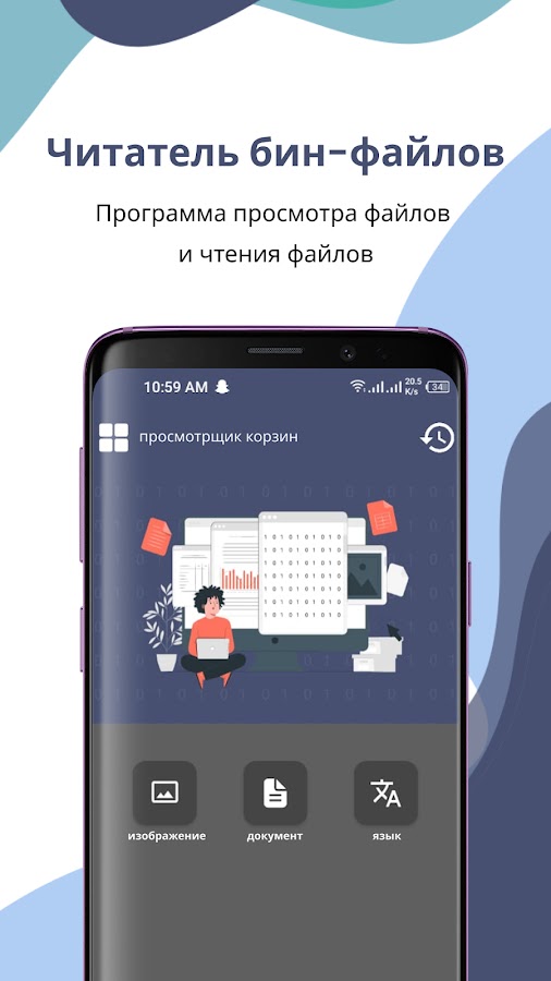Bin File Opener: приложение Bin Viewer позволяет читать файлы bin и открывать двоичные файлы на вашем устройстве Android. Теперь читать двоичные файлы с помощью этого средства просмотра файлов для Android-приложения bin Viewer очень легко. Если в вашем телефоне много файлов bin и вам нужно их открыть, просто попробуйте эту программу для открытия файлов формата bin: приложение для открытия файлов фотографий bin. Просмотрщик файлов Bin для Android — очень полезное приложение, которое позволяет пользователю открывать и просматривать двоичные файлы, хранящиеся на устройстве. Bin File Opener: приложение Bin Viewer очень просто в использовании, поскольку оно имеет простой интерфейс для открытия и просмотра двоичных файлов. Хотите преобразовать свою фотографию в двоичный код или формат? Попробуйте использовать этот файл bin для просмотра: открывалка для мусорных баков для Android. Основная цель разработки этого открывателя корзин: приложение Bin Viewer для преобразования любых фотографий и всех документов в двоичный файл. Вы также можете открыть эти файлы внутри приложения. Преобразуйте любую картинку в двоичный код и сохраните в виде PDF.