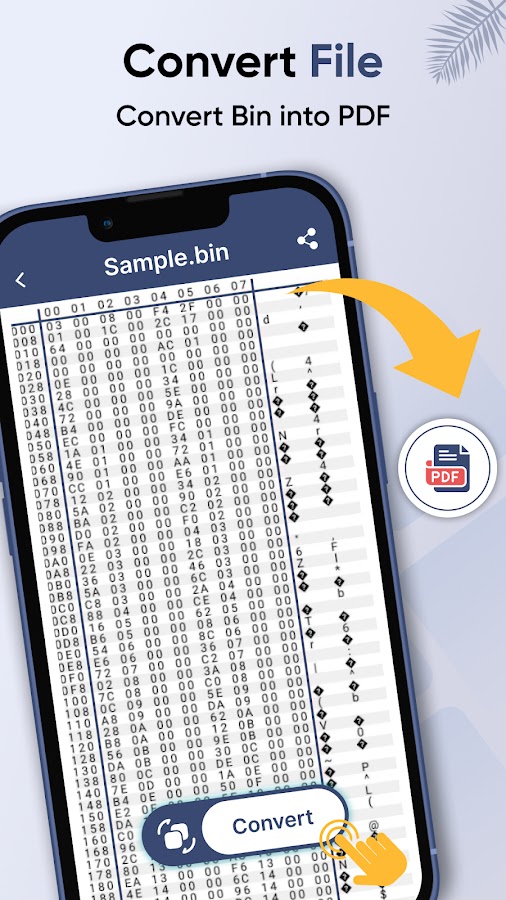 2. Функция просмотра bin в средстве открытия bin-файлов для Android позволяет пользователю просматривать все bin-файлы с помощью смартфона. Используя эту функцию, можно выбрать любой bin-файл из мобильного хранилища. Всего пользователю доступно четыре формата, включая двоичный, шестнадцатеричный, десятичный и восьмеричный. Пользователь может просматривать файл, а также конвертировать его в PDF.