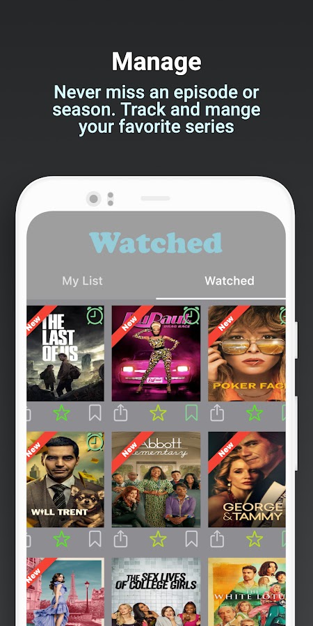 Поскольку перегрузка контентом становится реальной проблемой, у BingeWatch есть решение. Наше приложение позволяет организовать ваш контент в два списка — «Мой список» и «Список просмотра». Легко отслеживайте шоу, которые вы хотите посмотреть, и те, которые вы уже видели. Кроме того, мы сортируем ваши повторяющиеся сериалы по дате их последнего выхода в эфир, что позволяет легко оставаться в курсе последних выпусков.