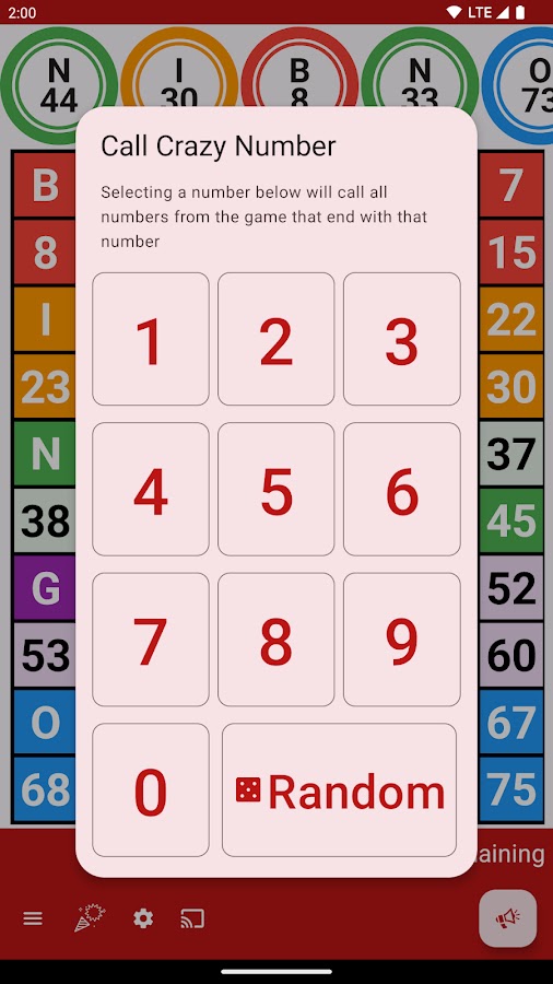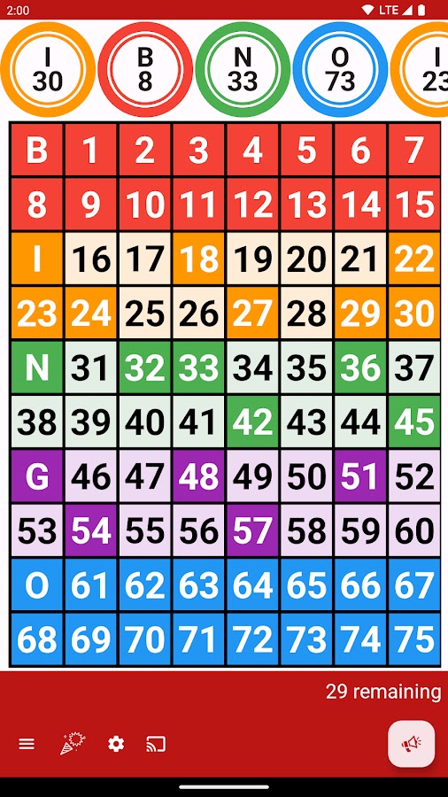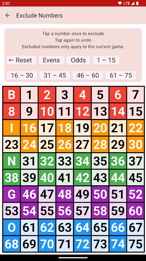 * Исключение — игнорируйте определенные цифры, если они не используются в игре. * Bingo Lingo — в режиме 90 шаров включите эту опцию, чтобы услышать жаргон бинго.