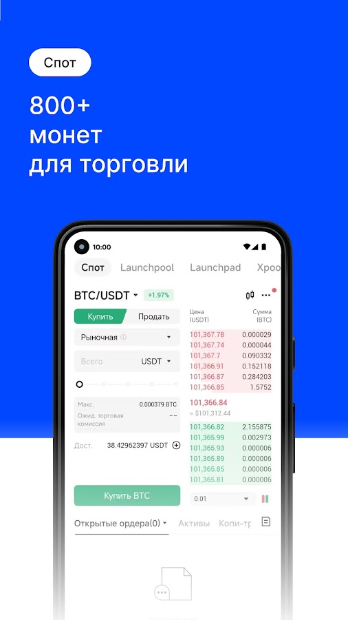 Спот торговля позволяет быстро совершать сделки с BTC, ETH, XRP и другими популярными криптовалютами