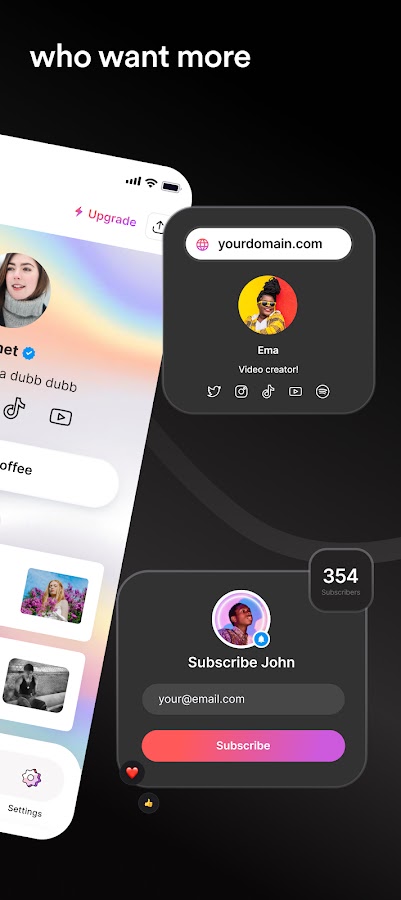 Bio Link предназначен для создателей. Мы одержимы дизайном, скоростью и, прежде всего, предоставлением вам полного контроля над вашей аудиторией. Мы также облегчаем вам создание списка адресов электронной почты. Мы считаем, что каждый должен иметь прямые отношения со своей аудиторией.
